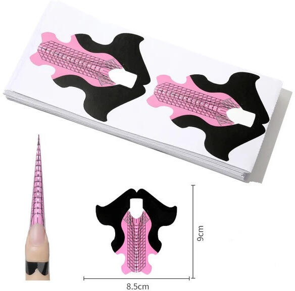 Épített zselés, vagy épített porcelános technikánál tudod használni ezt az öntapadós papír műköröm sablonokat. Ha szükséges felragasztás előtt ollóval tudod alakítani a papír sablon formáját. Keskeny sablonokat a rövidebb műkörmökhöz, a széles sablonokat inkább a hosszabb műkörmök építéséhez használd. Előkészítése után ragaszd fel a sablont, és már kezdheted is a körömépítését. Mérete : 8,5x9cm